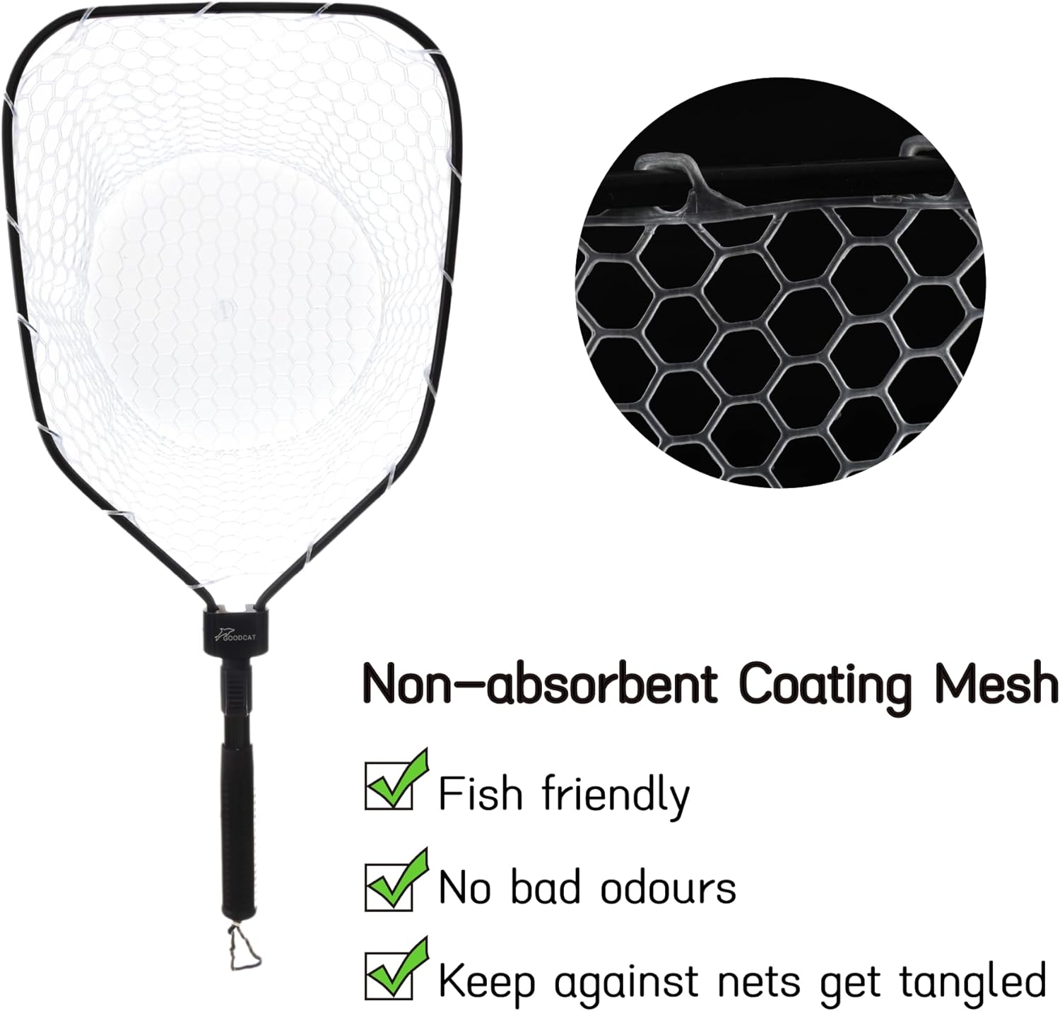 GOODCAT Fly Fishing Landing Net Soft Rubber Mesh Trout Net Catch and Release Net